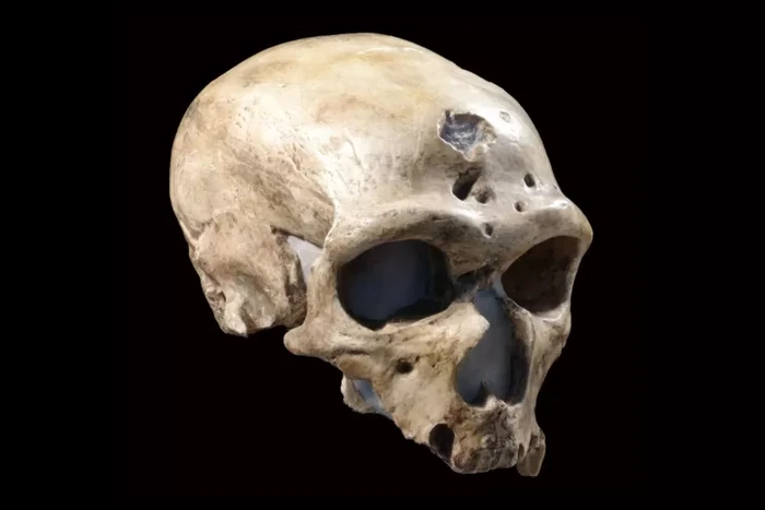 7. La Chapelle-aux-Saints (Neanderthal): Spesimen Neanderthal yang ditemukan di Prancis tahun 1908 ini berumur sekitar 50.000 tahun. Tengkorak ini menantang interpretasi anatomi Neanderthal sebelumnya, khususnya mengenai postur. Awalnya dianggap sebagai bukti postur bungkuk, analisis menunjukkan sikap lebih tegak. Temuan La Chapelle-aux-Saints jadi pusat perdebatan mengenai kemampuan kognitif dan budaya Neanderthal. Ciri tengkoraknya menunjukkan adaptasi terhadap lingkungan dingin. Penemuan ini berkontribusi signifikan dalam menyempurnakan pengetahuan tentang morfologi, perilaku, dan adaptasi Neanderthal. Foto: Smithsonian