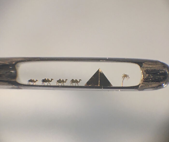Seni Mikro Karya Mykola Syadristy - Kereta Unta di Lubang Jarum Foto: Boredpanda