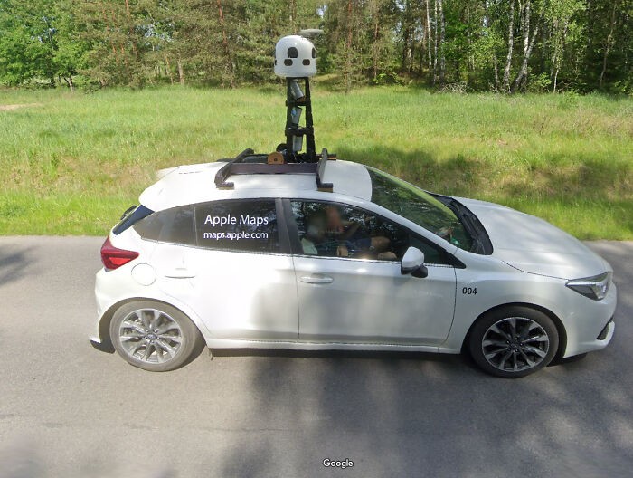 Mobil Apple Maps Menyalip Mobil Google Maps Foto: Boredpanda
