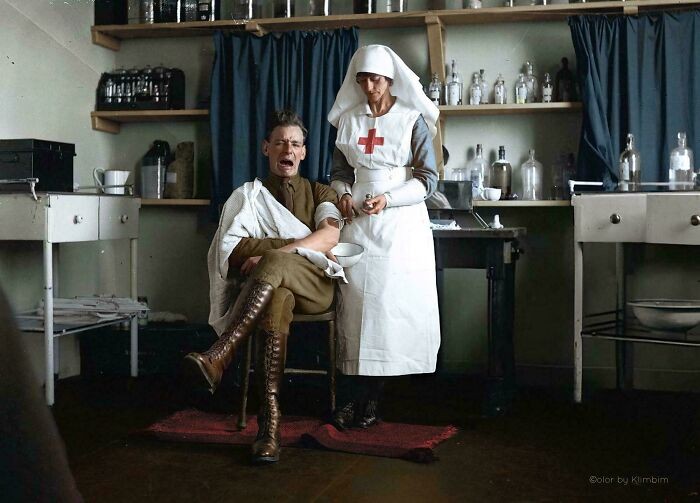 Tentara Inggris Menerima Suntikan Menyakitkan dari Seorang Perawat di Sepanjang Garis Depan Rusia Foto: Boredpanda