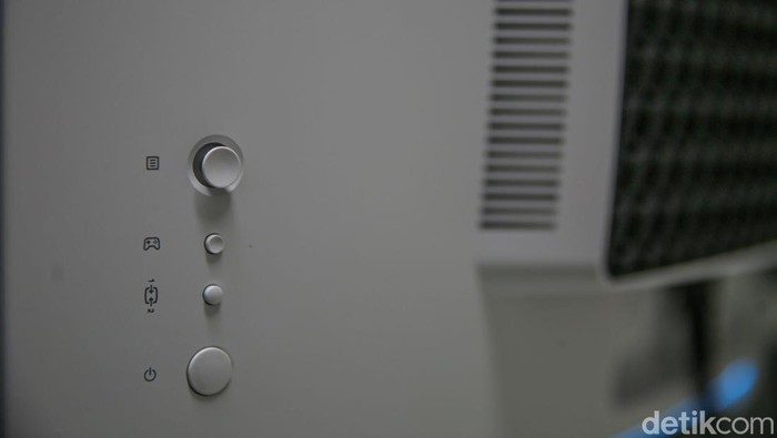 Tombol on/off dan settingan yang ada di sisi belakang layar. Foto: Rifkianto Nugroho/detikcom