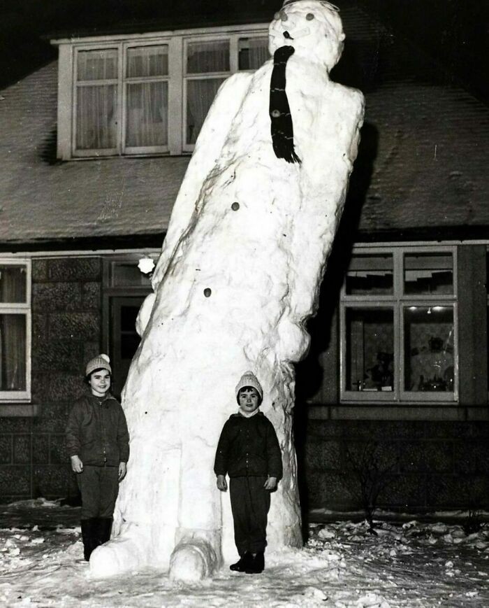 Manusia Salju Raksasa Berukuran 17 Kaki, Dibuat Oleh Dua Gadis di Aberdeen, Skotlandia, 1963 Foto: Boredpanda