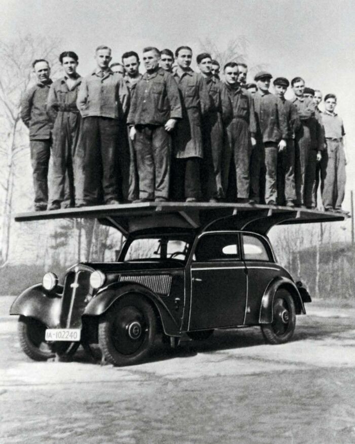 Pekerja Audi Menunjukkan Kekuatan Bodi Audi 920 Pada Tahun 1938 Foto: Boredpanda