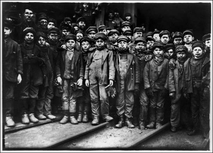 Diambil oleh Lewis W. Hine, seorang fotografer Amerika. Foto ini menunjukkan kondisi pekerja anak dan kehidupan keras orang-orang di tambang batu bara yang terletak di selatan Pittson, Pennsylvania. Foto: 121clikcs