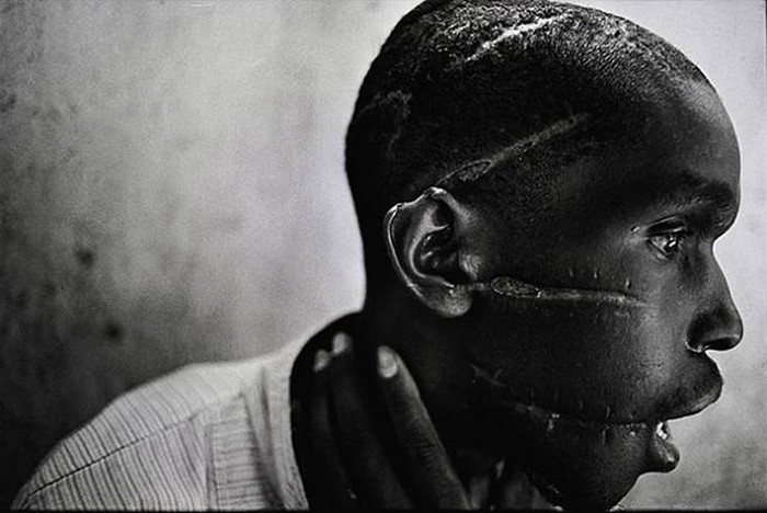 Dijpret oleh oleh James Natcheway. Gambar ini menceritakan genosida yang terjadi di Rwanda. Pria Hutu ini berada di salah satu kamp konsentrasi dan disiksa secara brutal. Ia kemudian berhasil bertahan hidup setelah dibebaskan. Foto: 121cliks