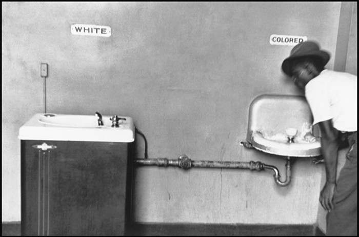 Pancuran air minum terpisah untuk warga kulit putih dan kulit hitam di North Carolina, Amerika Serikat Diabadikan oleh Elliot Erwitt. Foto: 121cliks