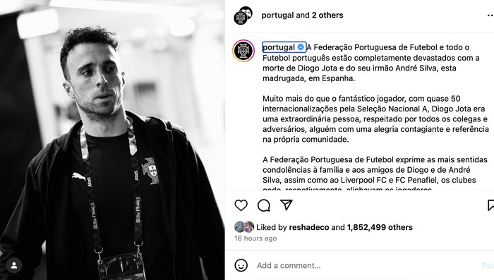 Tim nasional Portugal sudah jelas berduka mendalam. Foto: Instagram