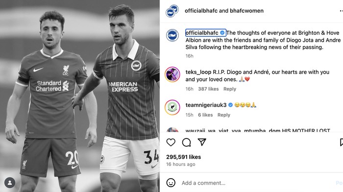 Klub Brighton juga memposting ucapan duka cita di Instagram. Foto: Instagram