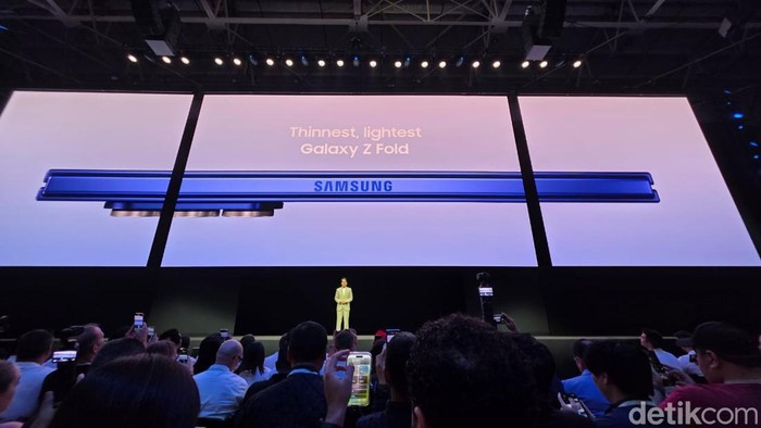 Samsung resmi memperkenalkan jajaran ponsel lipat terbarunya, Galaxy Z Fold7 dan Galaxy Z Flip7, dalam acara Galaxy Unpacked. Foto: detikINET/Adi Fida Rachman