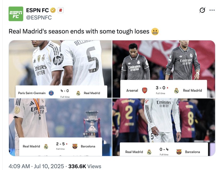 Kekalahan-kekalahan besar mendera Real Madrid. Foto: X.com
