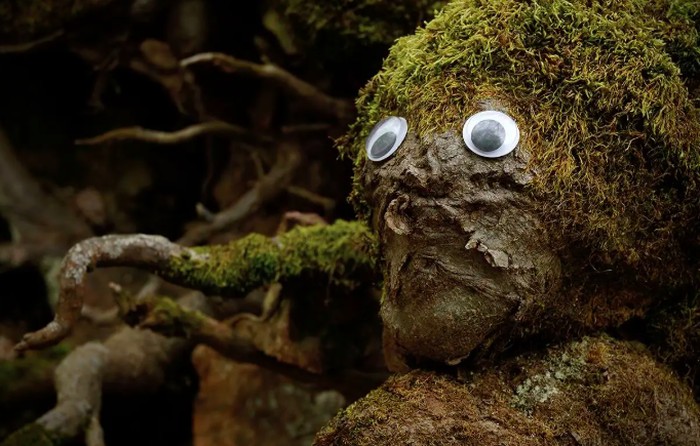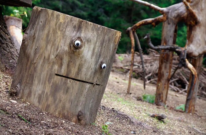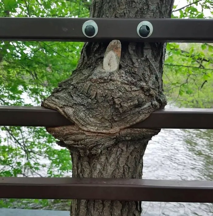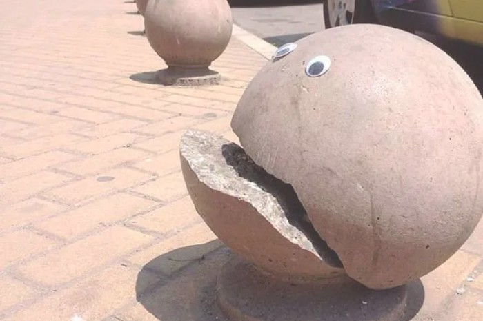 Ia menempelkan mata pada bola beton retak yang menyerupai karakter kartun hingga batang pohon yang tampak tersenyum. Foto: Street Art Utopia
