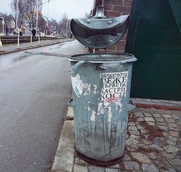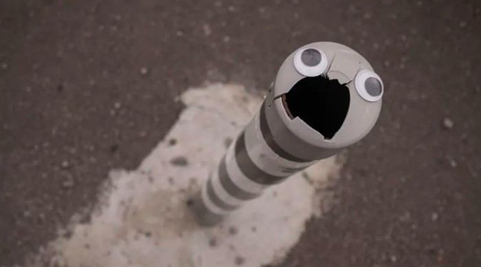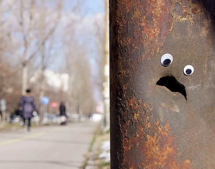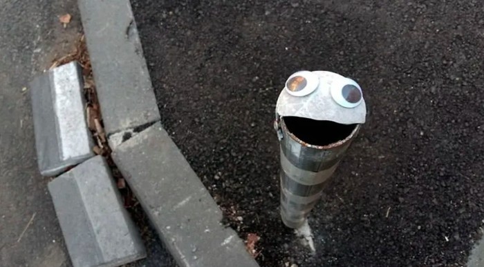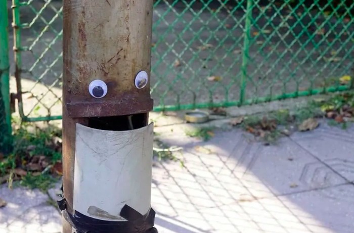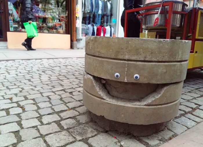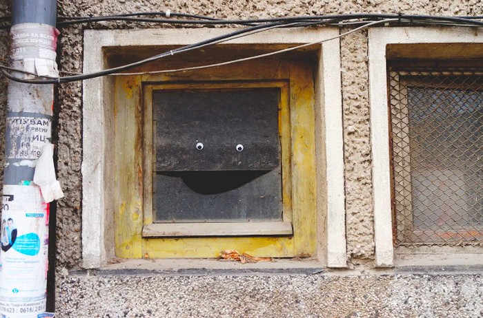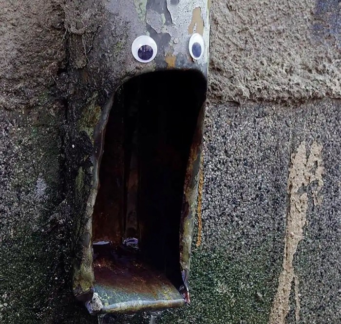 Seniman jalanan Bulgaria Vanyu Krastev menambahkan sentuhan humor ke ruang perkotaan dengan menempelkan mata googly ke benda-benda sehari-hari. Foto: Street Art Utopia
