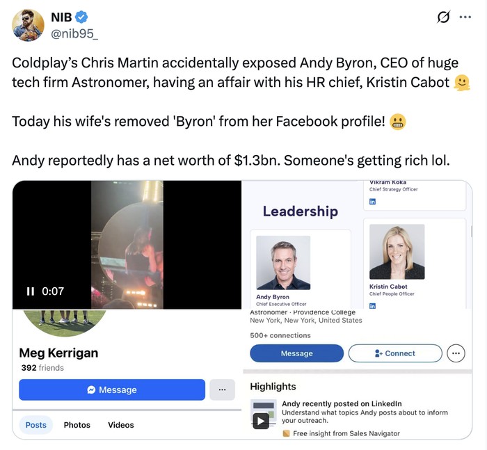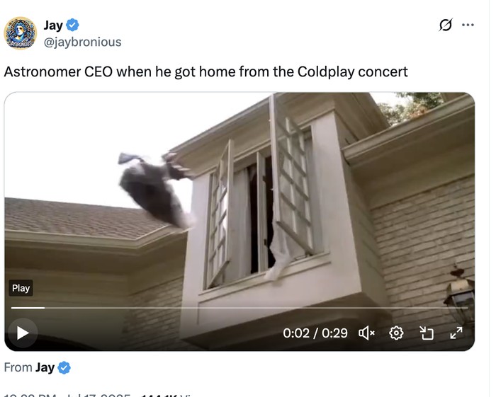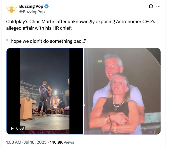 Meme Konser Coldplay Ciduk CEO Teknologi Selingkuh dengan Bos HRD