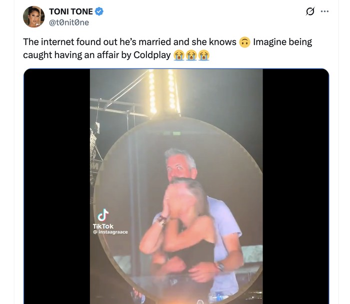 Bayangkan, tertangkap basah selingkuh saat konser Coldplay. Foto: X.com