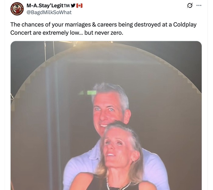 Peluang pernikahan dan karir Anda rusak di konser Coldplay sangat rendah tapi tidak pernah nol. Foto: X.com