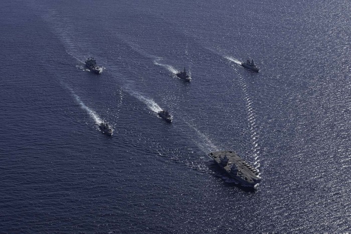 Jakarta - Kapal induk Amerika Serikat dan Inggris dengan teknologi canggih terlihat berkeliaran bersama kapal perang lain di Laut Timor.