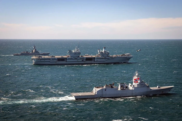 Terlihat pula kapal perang Norwegia, HNoMS Roald Amundsen, yang ikut serta dalam latihan gabungan ini. Foto: Royal Navy