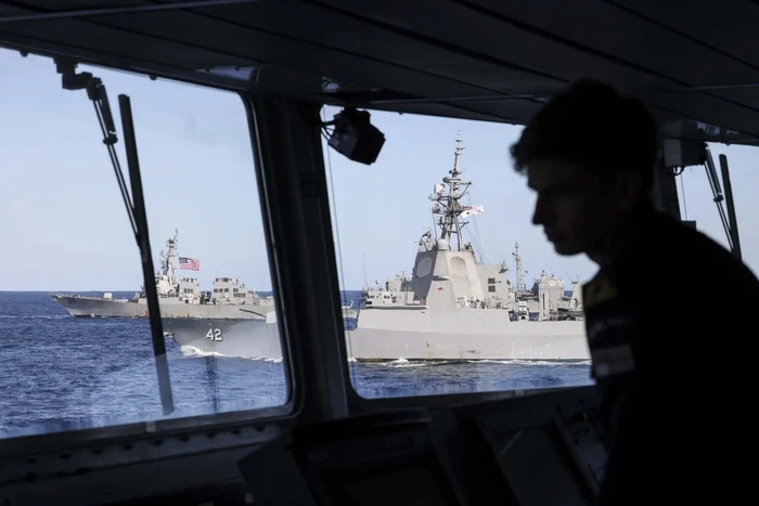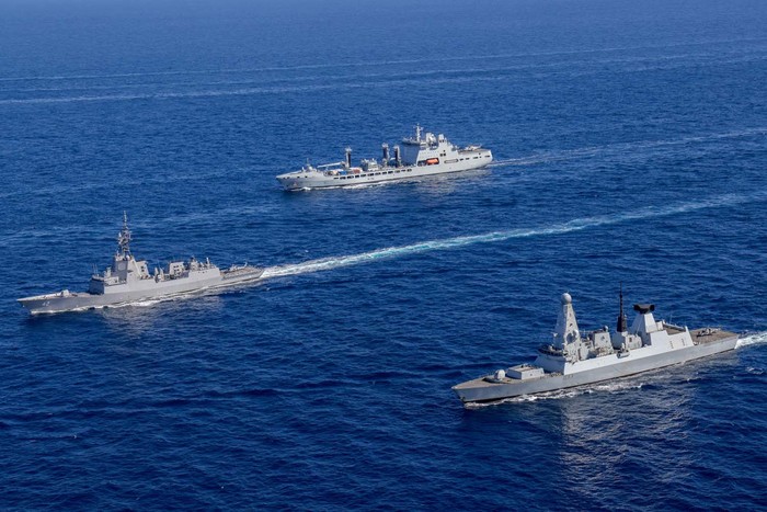 Rombongan kapal perang asing itu melintasi Laut Timor. Foto: Royal Navy