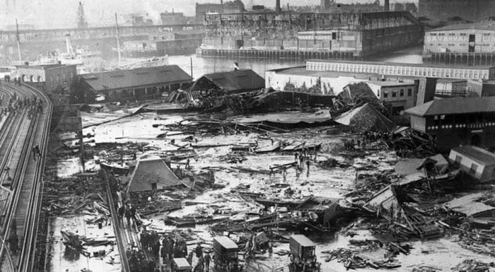 DiΒ 1919, warga di Commercial Street di Boston's North End sudah terbiasa dengan gemuruh tangki penampung setinggi 15 meter di sana. Tangki itu menampung molase untuk United States Industrial Alcohol, yang menggunakanya untuk memproduksi alkohol. Tangki itu sering bocor karena ketidakstabilan struktural. Di 15 Januari 1919, sebelum ada yang mengerti apa yang terjadi, 8,7 juta liter molase tumpah ke jalan, mengakibatkan gelombang pasang setinggi 5 meter yang melaju 56 km per jam. Gelombang itu menghancurkan setiap orang, kuda, bangunan, dan tiang listrik yang dilaluinya. Sebanyak 21 orang tewas dan 150 terluka.Β Foto: Listverse
