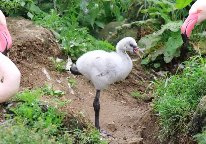 Bayi burung flamingo saat lahir tidak berwarna pink melainkan abu-abu, dan lebih mirip dengan kisah anak itik buruk rupa. Foto: via BrightSide