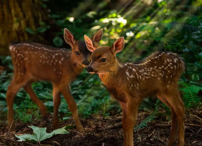 Anak rusa sering lahir di puncak musim predator dan secara alami rentan terhadap serangan. Sebagai perlindungan alami, mereka lahir dengan banyak bintik putih sebagai kamuflase di tubuh. Foto: via BrightSide