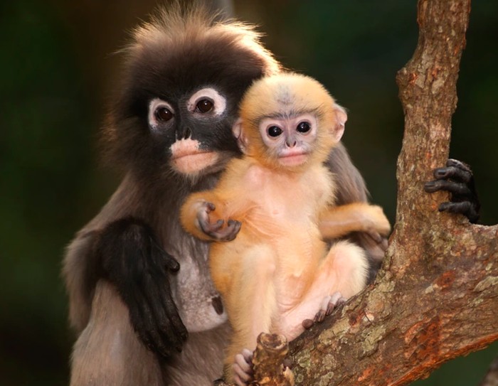 Bayi manusia memiliki warna kulit yang mirip dengan induknya. Sedangkan bayi lutung, punya keunikan lahir dengan warna yang berbeda dari induknya. Foto: via BrightSide