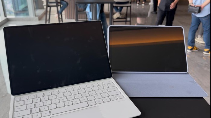 MatePad Pro 12.2Β punya layar tandem OLED yang merupakanΒ salah satu yang terbaik di kelas tablet. Ukurannya 12,2 inci, resolusi 2.800x1.840 piksel, rasio 3:2, dan kecerahan puncak mencapai 2.000 nit. Di bawah sinar matahari pun, konten tetap terlihat tajam. Foto: Rizqy Nur Amalia/detikINET