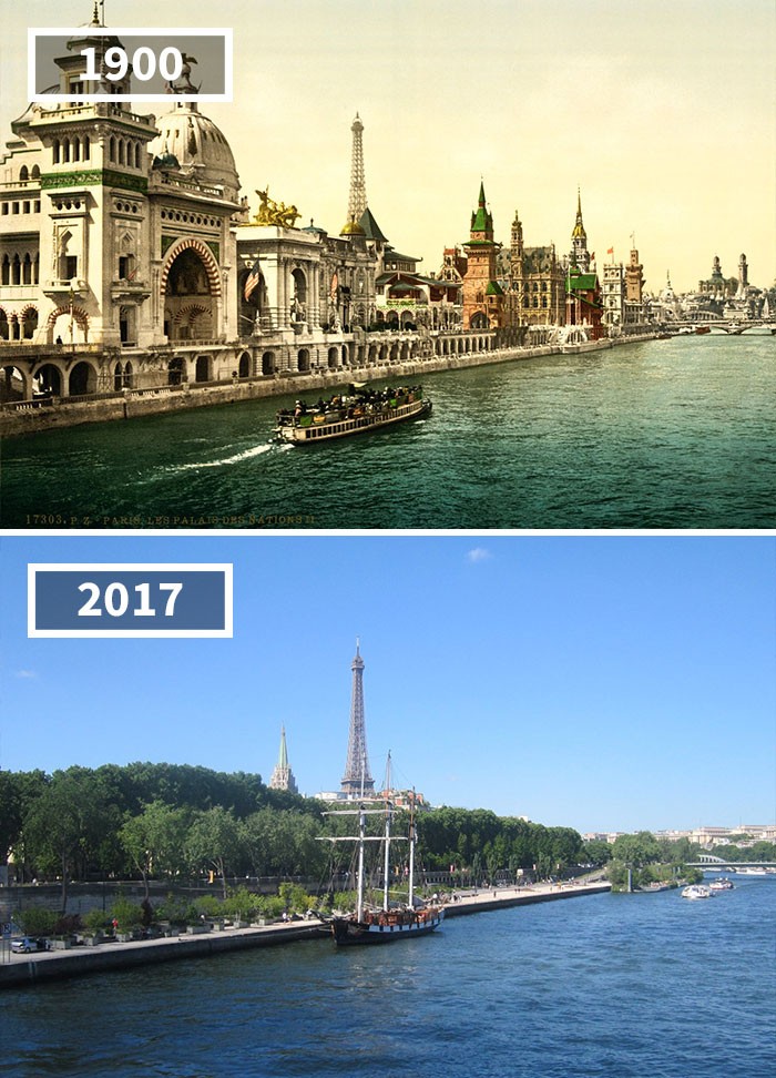 Quai Des Nations, Paris, Prancis, 1900 β 2017 Area pameran megah di awal abad 20, kini berganti menjadi kawasan modern tanpa bangunan asli. Foto: re:photos