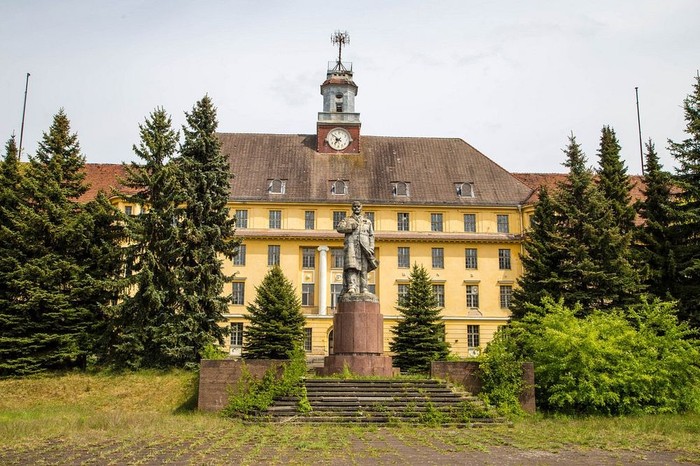 Wunsdorf: Berjuluk Moskow Kecil danKota Terlarang, Wunsdorf jadi markas Tentara Merah di Jerman Timur pascaperang. Awalnya digunakan sebagai pangkalan Nazi. Rumah bagi sekitar 60.000β75.000 orang, sebagian besar adalah tentara, Wunsdorf memungkinkan Uni Soviet memproyeksikan kekuatan di Jerman Timur selama beberapa dekade. Ada kereta api reguler ke Moskow dan penumpukan kekuatan militer besar-besaran jika Perang Dingin memanas. Saat ini, kota itu sudah jadi reruntuhan. Masih ada patung Vladimir Lenin, pengingat yang jelas tentang masa lalunya. Foto: Amusing Planet