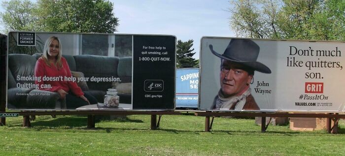 Bukan dua jenis billboard yang bisa bersanding begini. Soalnya jadi ambigu. Foto: imgur via Bored Panda