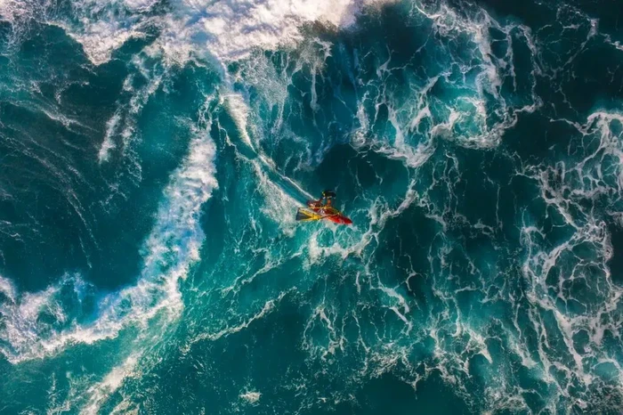 βDiambil dari atas dengan drone, gambar ini menawarkan tampilan unik dari olahraga yang jarang dilihat orang dari dekat. Foto ini diambil saat kompetisi American Windsurfing Tour, tempat beberapa peselancar angin terbaik dunia datang untuk menguji kemampuan mereka. Dari pemandangan udara ini, Anda dapat benar-benar merasakan kekuatan lautan dan hubungan antara peselancar, ombak, dan angin yang menggerakkan semuanya.β Foto: Ocean Photographer of the Year
