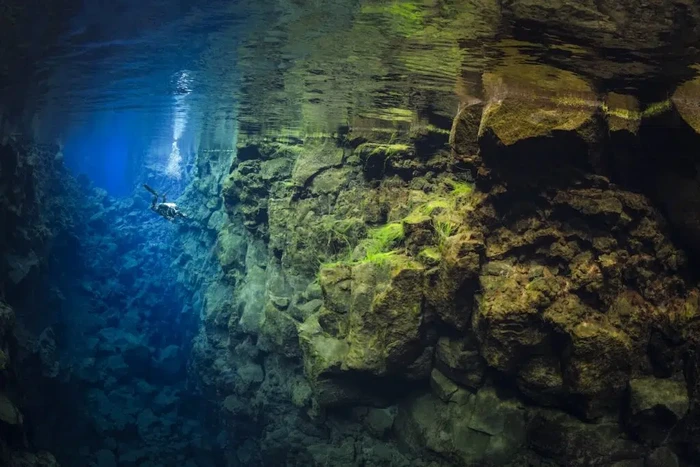 Nama: Byron Conroy Lokasi: Islandia "Celah Silfra adalah 'dunia yang luar biasa dalam hal visibilitas,'" kata Conroy. "Ini adalah tujuan terbaik untuk memotret dengan cahaya ambient sudut lebar. Jarak pandangnya mencapai lebih dari 100 meter dan celahnya terlihat sangat berbeda tergantung waktu dan musim. Waktu favorit saya adalah musim semi ketika kami mendapatkan cahaya yang terarah dan pertumbuhan pertama alga hijau." Foto: Ocean Photographer of the Year