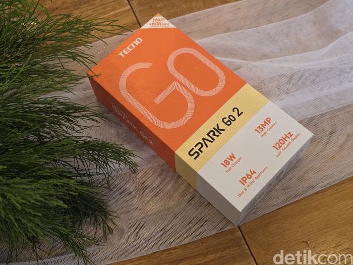 Tecno Spark Go 2 sudah bisa dibeli di Indonesia mulai 24 Juli 2025 dengan harga Rp 1.129.000. Pada penjualan perdananya di sejumlah marketplace, seperti Tokopedia, HP ini dibanderol Rp 958.550. Segera dipasarkan versi 128 GB. Foto: Adi Fida Rahman/detikINET