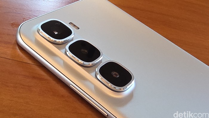 Β²Infinix Hot 60 Pro+ memiliki tiga kamera belakang dengan kamera utama 50 MP yang menggunakan sensor Sony IMX882 dengan AI RAW Masterpiece Engine. Di bagian depan terdapat kamera selfie 13 MP. Foto: Adi Fida Rahman/detikINET
