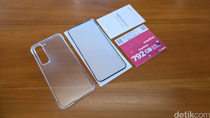 Tidak ketinggalan case transparan, tempered glass, kartu perdana Smartfren dan kartu petunjuk dberikan. Foto: Adi Fida Rahman/detikINET