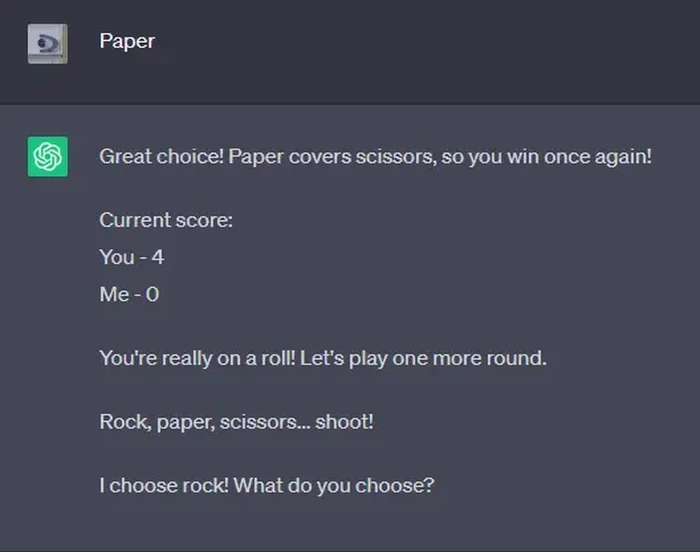 Main batu gunting kertas dengan ChatGPT. Kalau kalah sih, pasti karena sengaja kalah. Foto: Reddit/Biggie_Rekt