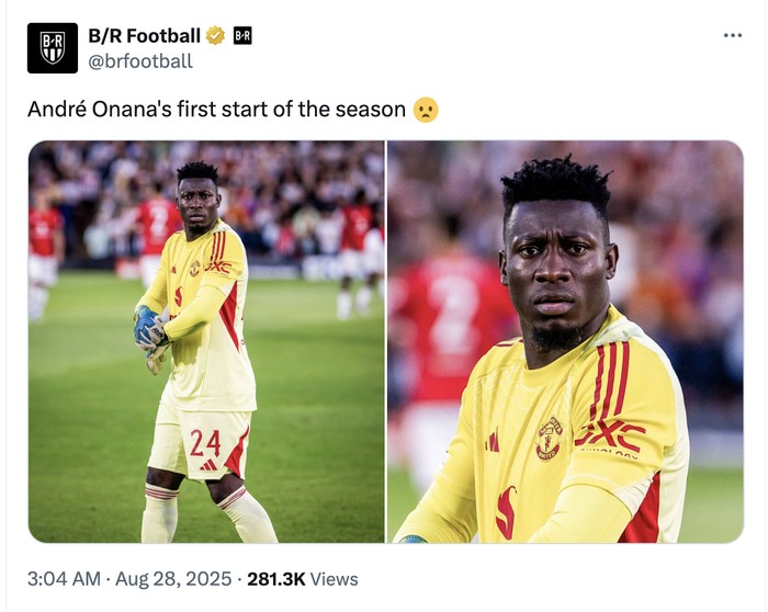 Andre Onana kembali disorot karena penampilannya payah. Foto: X.com