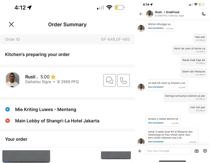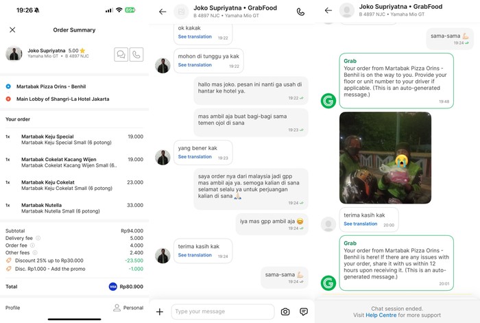 Foto Orderan Makanan Netizen Malaysia untuk Driver Ojol Indonesia