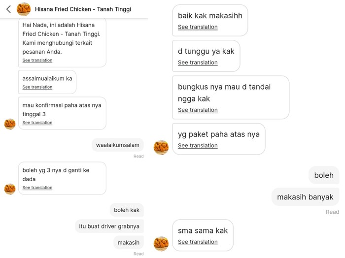Pesan ayam goreng untuk driver ojol. Foto: X.com