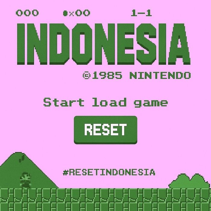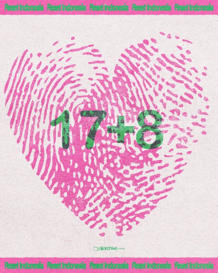 Poster ini terinspirasi dari sosok ibu berjilbab merah muda yang berani menghadapi aparat saat demo 28 Agustus 2025. Pink yang biasanya identik dengan kelembutan, kini berubah jadi simbol keberanian. Foto: X.com