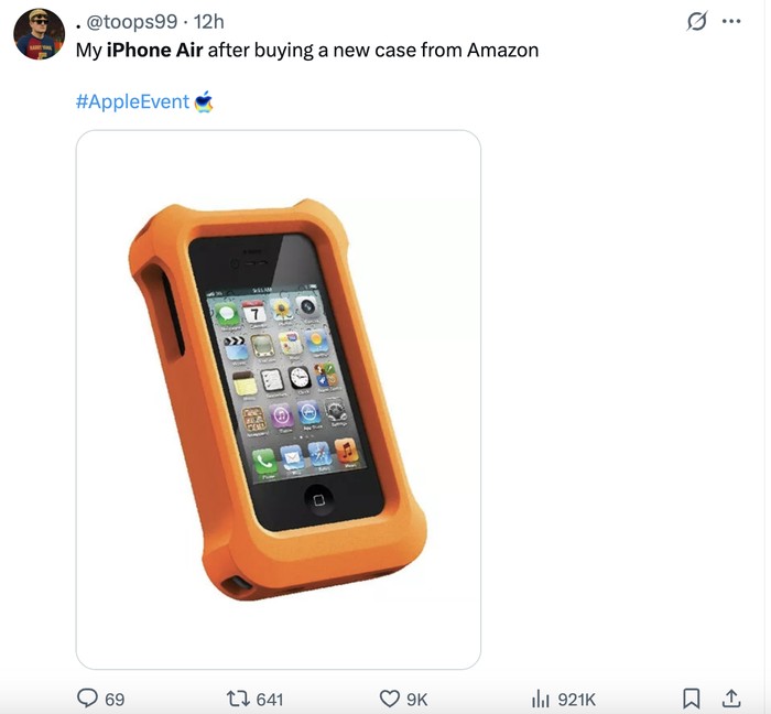 Jangan beli casing tebal untuk iPhone Air, nanti jatuhnya tidak tipis lagi. Foto: X.com