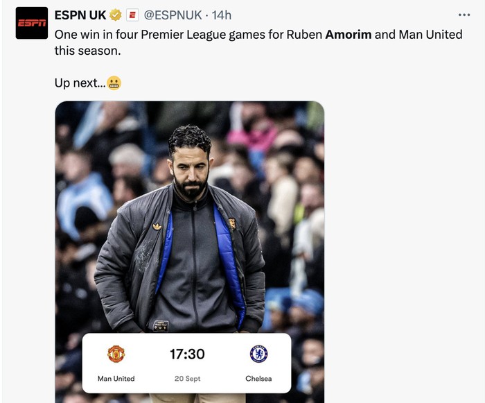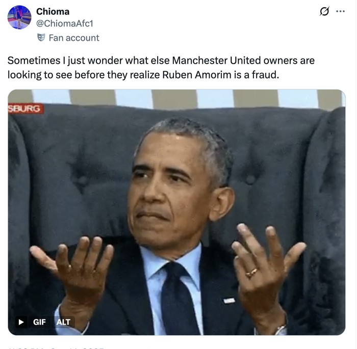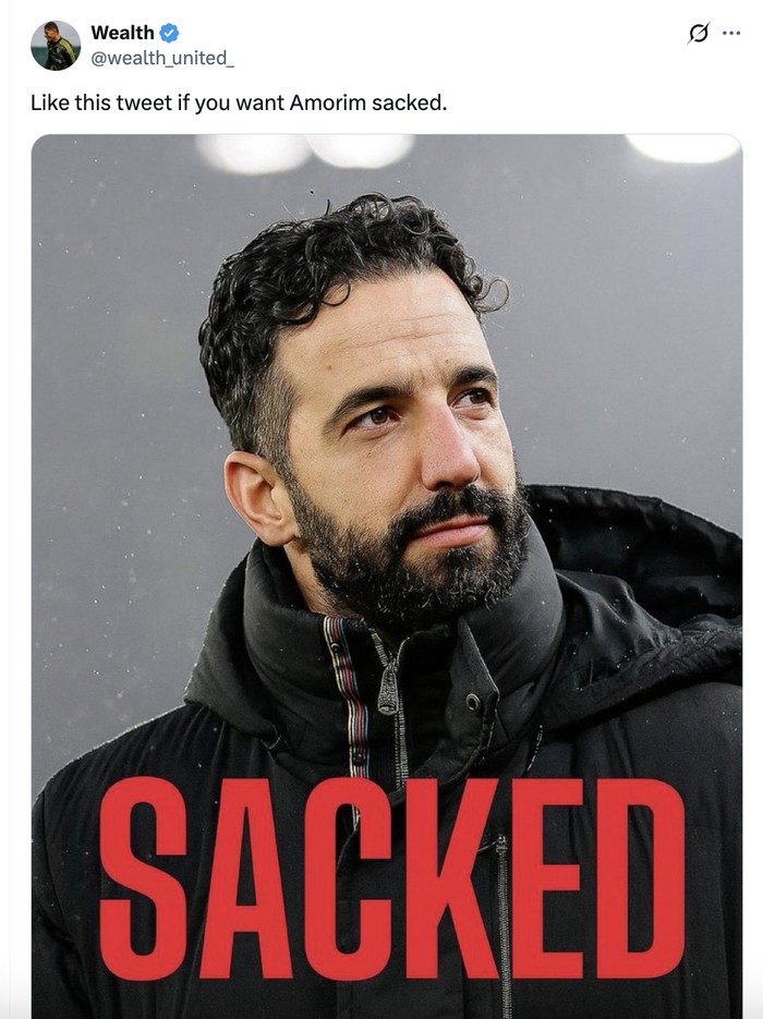 Seruan memecat Ruben Amorim mulai menggema di media sosial. Foto: X.com