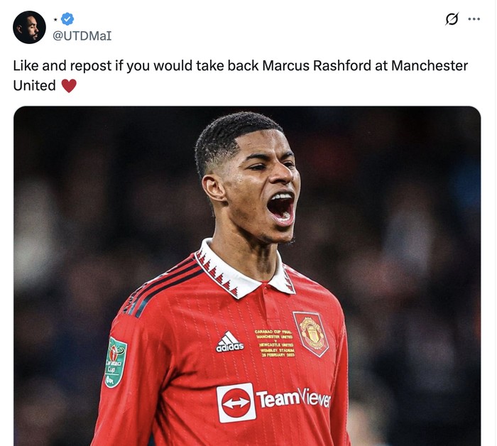 Semua orang senang Rashford akhirnya kembali bersinar. Foto: X.com