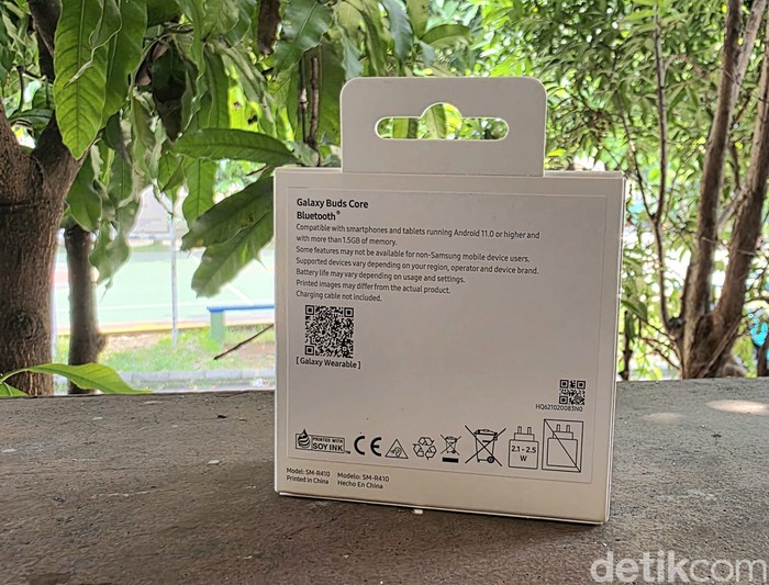 Samsung resmi meluncurkan Galaxy Buds Core di Indonesia. Perangkat true wireless stereo (TWS) ini siap memanjakan telinga dengan harga terjangkau. Ini penampakan kemasan bagian depannya. Foto: Fyk/detikinet
