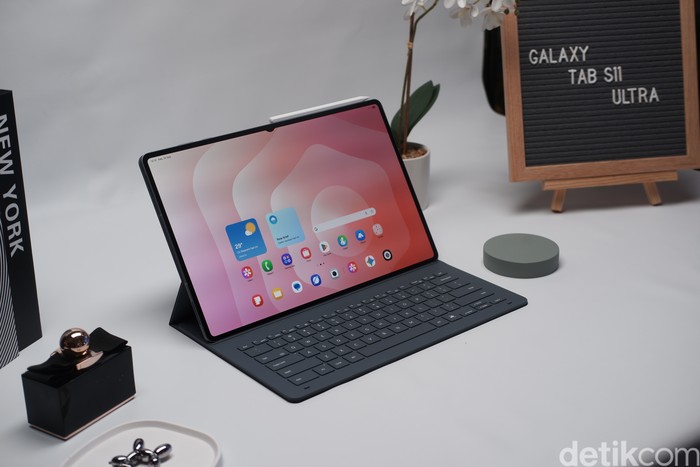 Galaxy Tab S11 Ultra tampil super tipis dengan bodi hanya 5,1 mm dan bezel 5,2 mm, memberikan pengalaman visual lebih luas tanpa mengorbankan portabilitas. Galaxy Tab S11 hadir lebih ringkas, tapi tetap mengusung kualitas premium khas Samsung. Foto: Adi Fida Rahman/detikINET