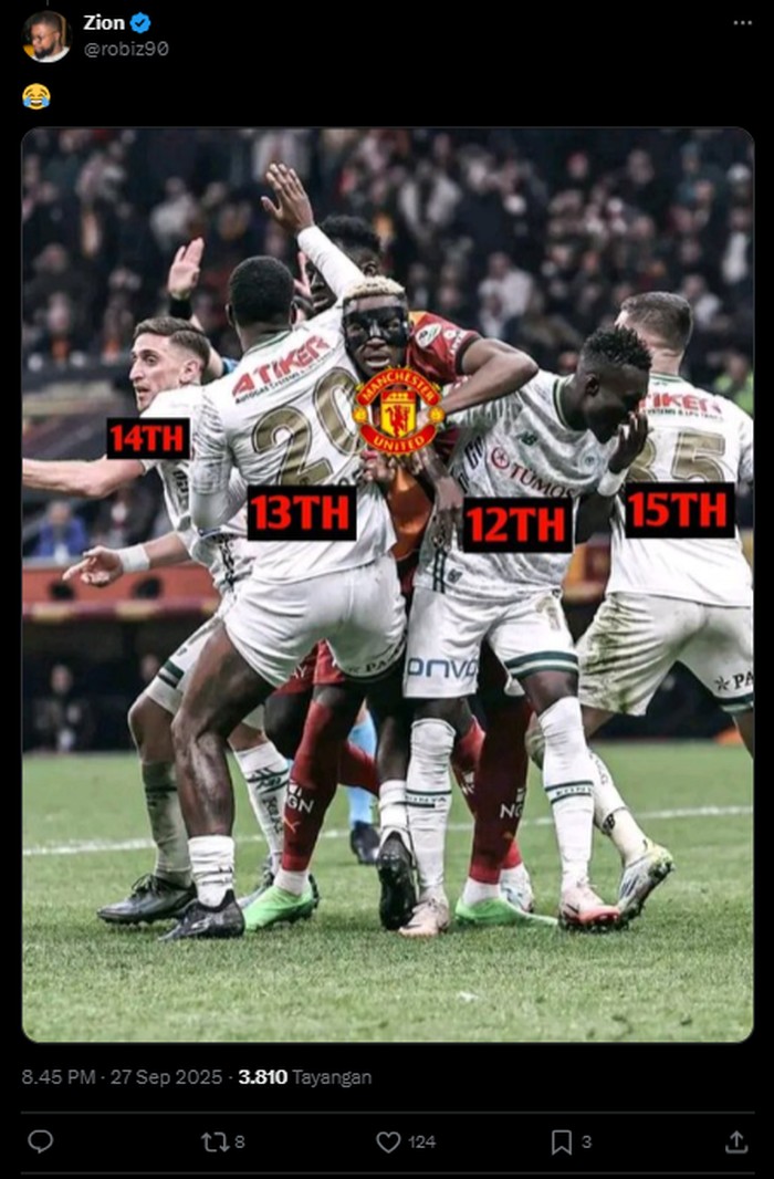 Kekalahan semalam membuat Manchester United terdampar di posisi 14. Foto: X.com