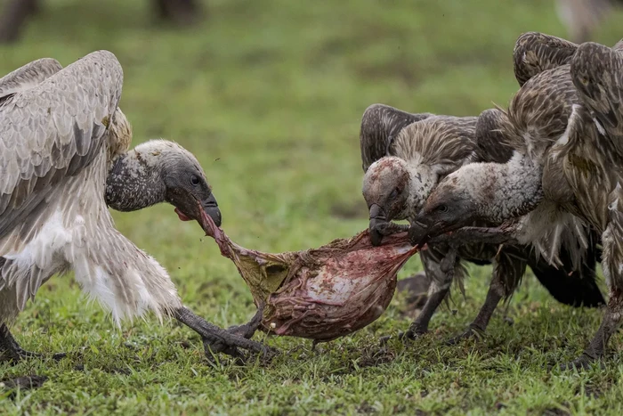 Burung nasar punggung putih mengais-ngais perut rusa liar di Maasai Mara. Foto: Discoverwildlife