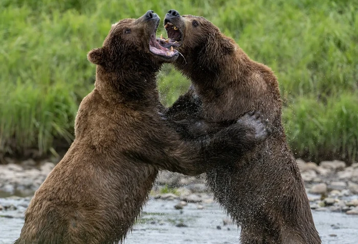 Dua beruang dewasa Alaska Brown terlibat pertarungan sengit di sepanjang sungai Foto: Discoverwildlife