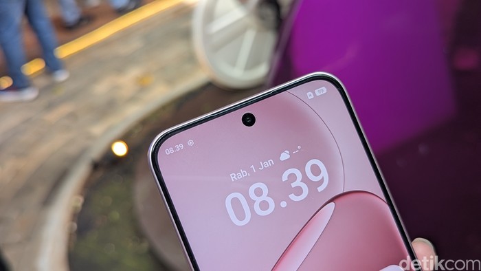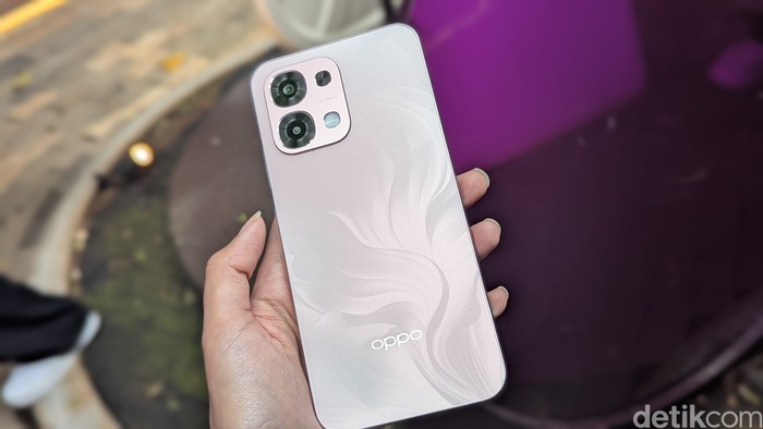 Oppo A6 Pro varian Merah Muda dihiasi pola mirip kelopak bunga dengan gradasi tekstur dan finishing yang lembut. Foto: Virgina Maulita Putri/detikINET