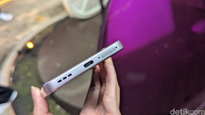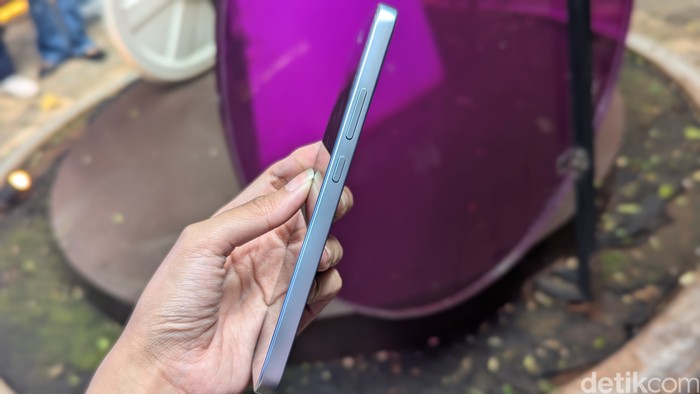 Oppo A6 Pro memiliki bobot 190 gram dengan ketebalan 8mm. Meski relatif tipis, bodi ponsel ini tetap tangguh dalam segala kondisi berkat standar Military Grade Shock, perlindungan AGC DT Star D+ di layar, dan rangka aluminium alloy. Foto: Virgina Maulita Putri/detikINET
